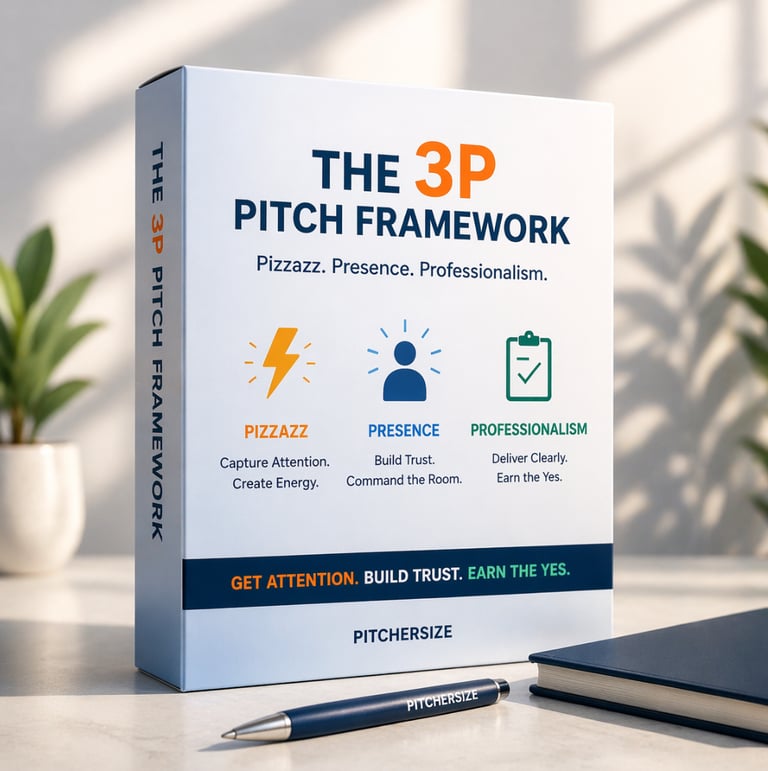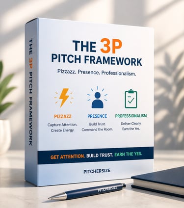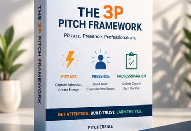 This approach is built on three key elements: Pizzazz, bringing energy and engagement that draws people in; Presence, projecting confidence and authority that makes others trust you; and Professionalism, ensuring your pitch is structured, clear, and easy to follow. Together, these qualities turn a simple presentation into a compelling and memorable experience.